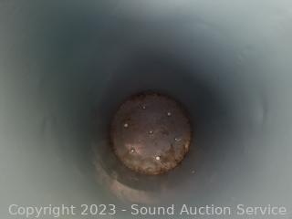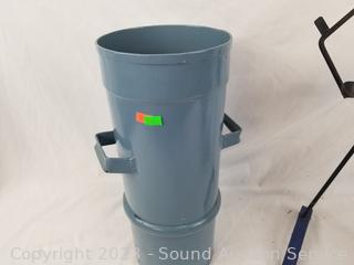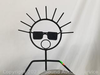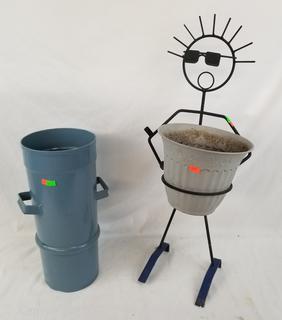 Lot Details: 5.5" H x 24" x 7" troughs, 25" H x 10" Metal art figure, Steel vessel 15" H x 6.5" Dia.