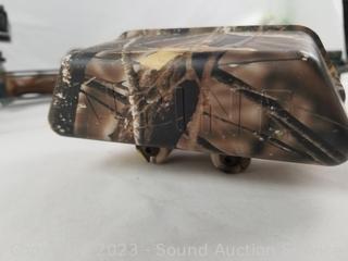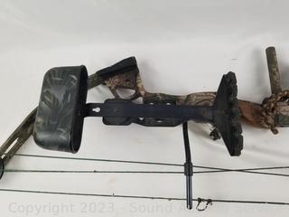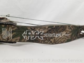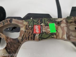Lot Details: Baby G-Force model, unsure of weight of draw. 40" long. Appears to be functioning as intended. comes with 2 arrows, broad head tips, quiver. Various scuffs & wear from use.