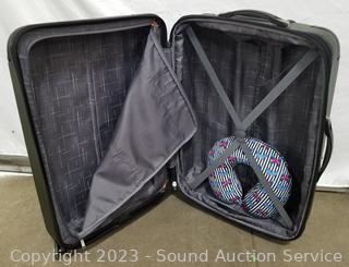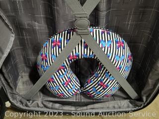 Lot Details: Various scuffs, cosmetic wear on the outside, inside in great condition. 29" x 19" x 10". Also comes with neck pillow.
