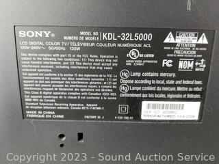 Lot Details: Sony KDL-32L5000 LCD TV - Works, no remote. Samsung Blu-ray Disc Player BD-J5100 - Works, comes with remote.
