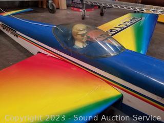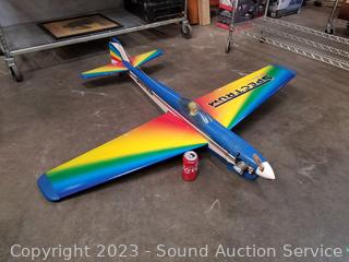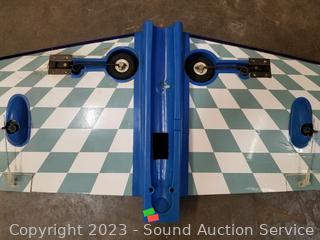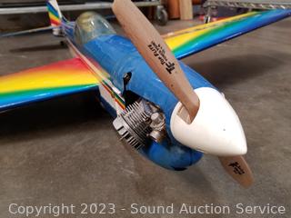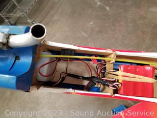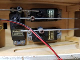 Lot Details: 56" wingspan, 55" length. Gas engine, retractable landing gear, appears complete. Some wear from age, use. Does not come with controller.