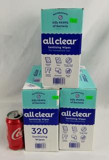 Lot #0076w: (3) 320pk All Clear Household Sanitizing Wipes