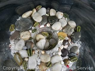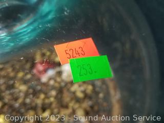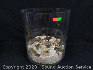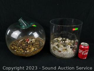 Lot Details: 12" H x 12" Dia Terrarium, 10.75" H x 9.75" Dia. hurricane with filler beads.