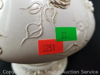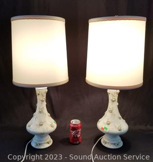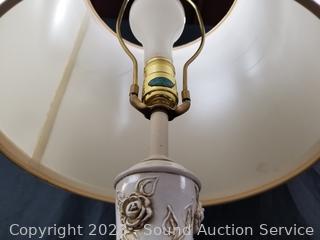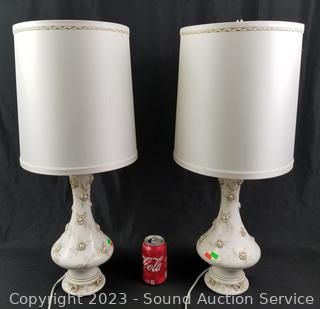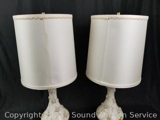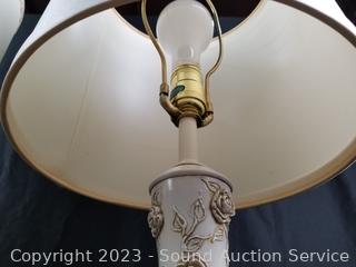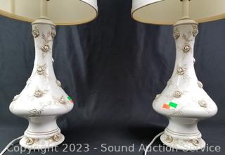 Lot #0022: Pair of Rose Motif White Composite? Table Lamps