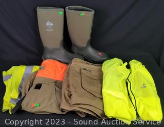 Lot #0104: 3 Hunting Vests, jacket & Muck Boots