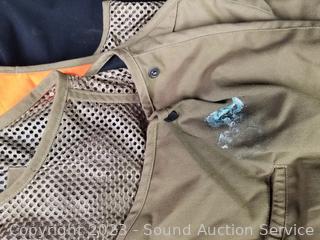 Lot Details: All in good condition. Vests S:M, (2) XL, Jacket S:2X, S:10 Boots.