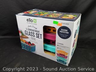 Lot #0213: 4 Ello 2 Compartment Glass Storage Containers