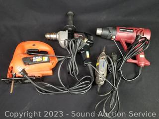 Lot Details: Black & Decker Scroll Saw, Chicago Elec. Heat Gun, Dremel 3000 Rotary Tool, Craftsman 1/2" Drill.