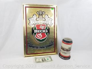 Lot #0128: Budweiser Stein & Becks Sign