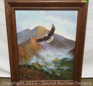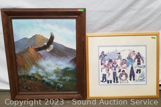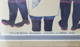 Lot Details: Huddig signed Ltd. #134/550? titled "Processing Salmon in Kodiak Alaska", 18" x 20". B.Campbell signed Eagle Painting, 25" x 21".