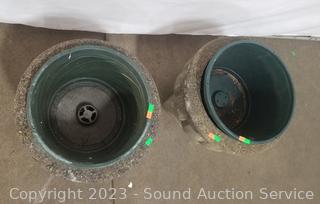 Lot Details: 13" H x 14" Dia pots. Some weathering & wear from use.