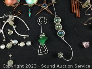 Lot #0096: 13pc Hanging Glass, Metal Decor