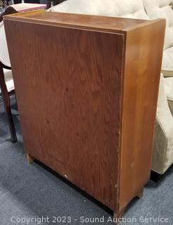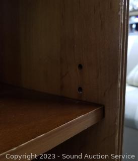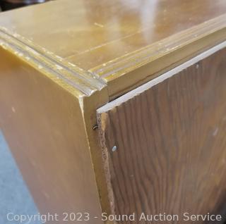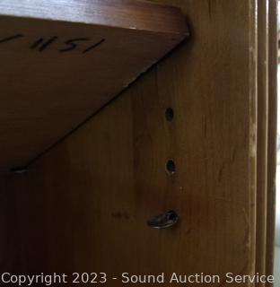 Lot Details: Assorted Scuffs & wear. 30" H x 30" W x 11" D. Appears to be solid wood construction.