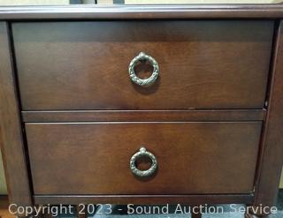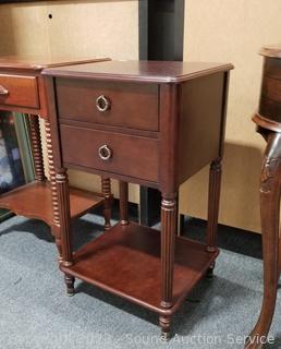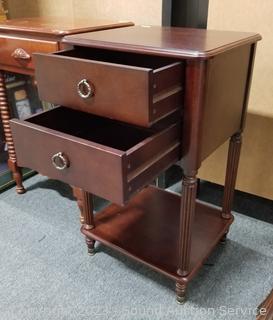 Lot #0021: 2 Drawer Cherry Finish Side Table