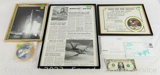 325 Lots Including; Beautiful Waterford Crystal 9-Light Chandelier, Nice Vintage Kimball Baby Grand Piano, Unique Ships Wheel 4 Light Chandelier, Negative Space Signed Bronze Einstein Sculpture, Erte "Winter in Paris" Framed Serigraph Artwork, Beige Microfiber Easy Chair/Sofa, Full Size Bed, Vtg. Fenton & Other Glassware, Art Glass Decor, Collectibles, Sports Cards, Bose Acoustic Wave Music System II, NASA Pictures/Artwork, Various Kitchen Cookware, Household Goods & Much More!!!