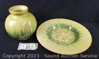 Lot #0044: 2pc Hand Painted Pottery Vase & Bowl Decor
