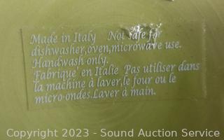 Lot Details: One has a sticker saying made in Italy. 11" H x 11" Dia vase, 19" Dia bowl. Don't see any issues.