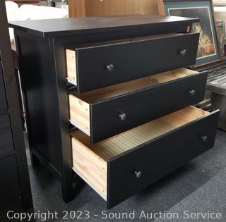 Lot #0025: Black Finish 3-Drawer Pine Chest