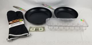 Lot #0195: Egg Container, Non-Stick Pans & Oven Mitts