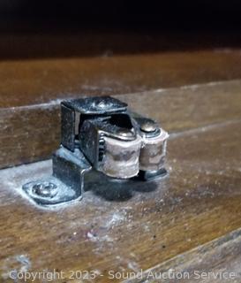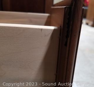 Lot Details: Folding doors, sliding swivel TV tray, 4 drawers, 2pc for easier movement. 87" H x 46" W x 27" D.