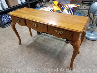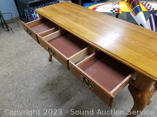 Lot #0231: Oak 3-Drawer Cabriole Leg Hall/Sofa Table