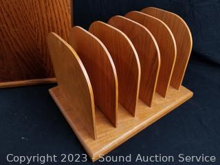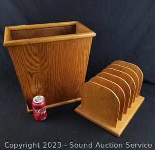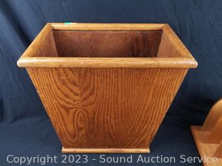 Lot #0106: Oak Wood Trash Bin & File Organizer