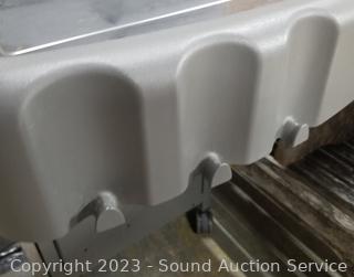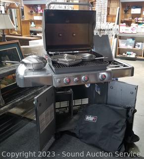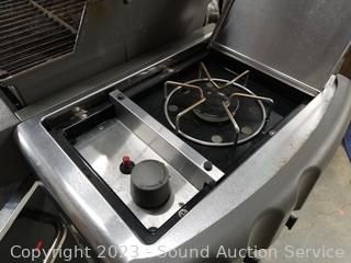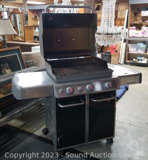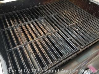Lot Details: Comes with cover, cover has some damage, holes. Various wear from use. 47" H x 57" W x 25" D. No hose hookups for propane tank, unable to test.