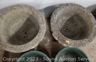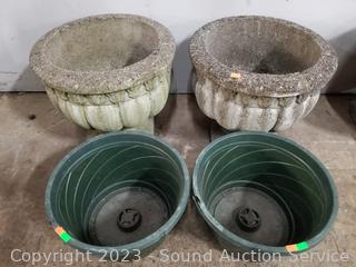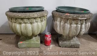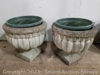 Lot #0076: 2 Concrete Planters w/Plastic Inserts