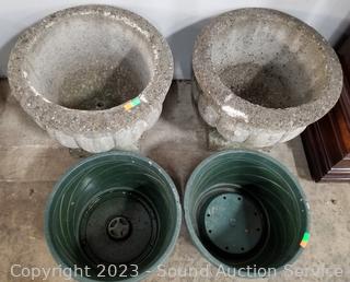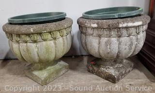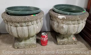 Lot #0077: 2 Concrete Planters w/Plastic Inserts
