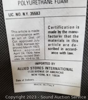Lot Details: Made in Italy. in excellent condition. Imported by Allied Stores International. In excellent condition, don't see any major issues. 35" H x 25.5" W x 16" to seat.