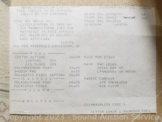 Lot Details: In great condition. Matches the previous couple lots. Comes with 6 contrasting throw pillows. 28" H x 59" W x 16" to seat.