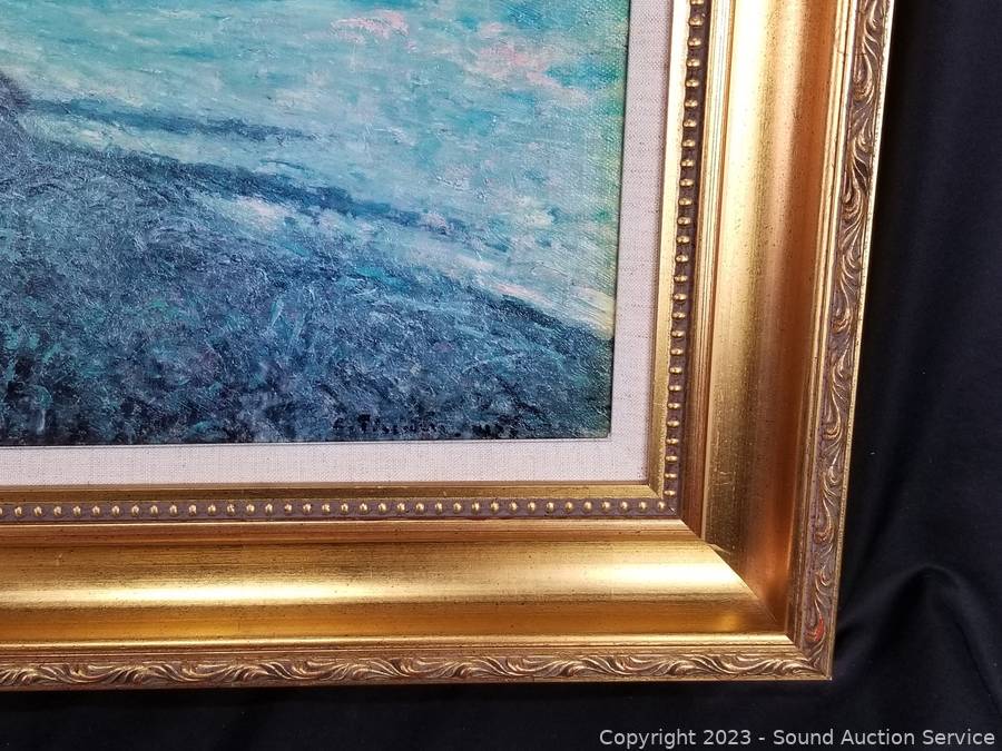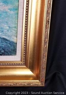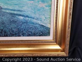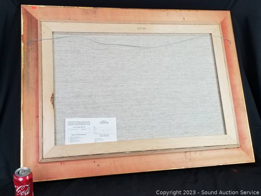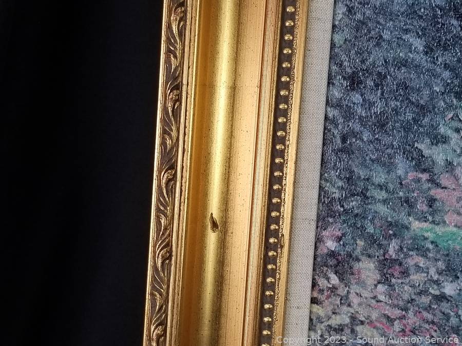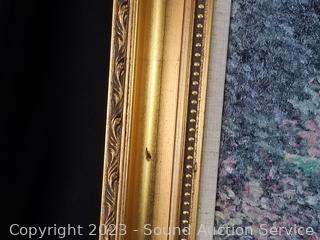 Lot Details: Oil on canvas, nice wood gold framed. Unable to make out signature, refer to photos. 30" x 40".