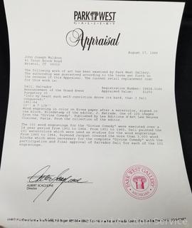 Lot Details: Comes with Park West appraisal of $1,250, with complete information on piece and series & CoA. Titled Announcement of the Grand Event "Purgatory 30" 10-3/8" x 13".
