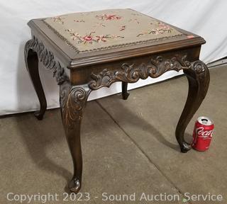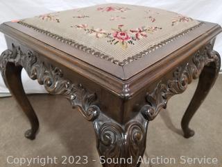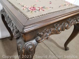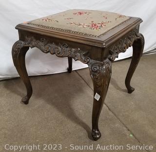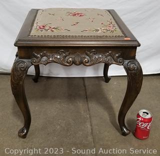 Lot #0072: Vtg. Cabriole Leg Needlepoint Stool