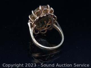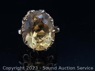Lot Details: Marked 14k, held on acid test. Stone tested citrine, approx. 12mm x 16mm. TW:7.4g.