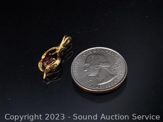 Lot Details: Unmarked, held on 14K acid test. Stone tested, almandine, jadeite, pyrope, rubellite, spessartite. TW:1.6g. Approx. 3.5mm x 5.5mm stones.