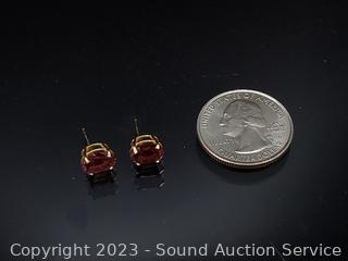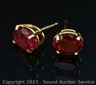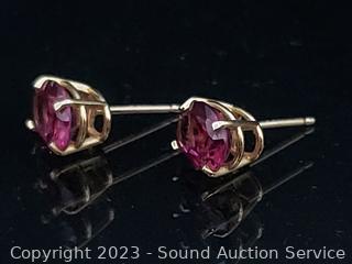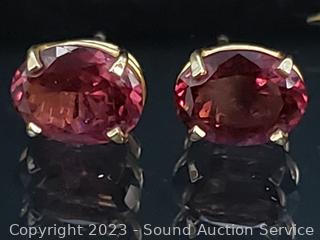 Lot #0055: 14K Gold & Rubellite Stud Earrings