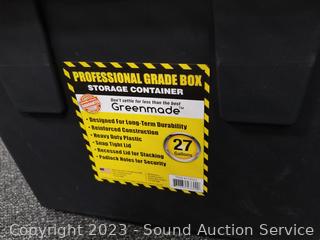 Lot #0102:     2 Heavy Duty Greenmade 27 Gallon Storage Totes