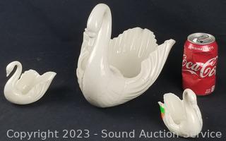 Lot #0081: 3 Lenox Porcelain Swan Dishes