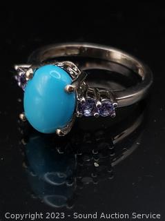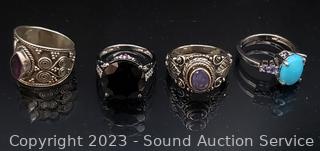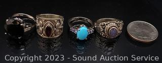 Lot #0070: 4 Sterling & Stone Set Rings S:7.5, TW:19.8g.