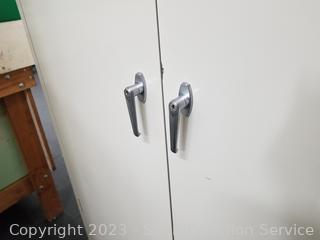 Lot Details: Some scuffs & wear to finish. Locking but no keys. 72" H x 42" W x 18" D.