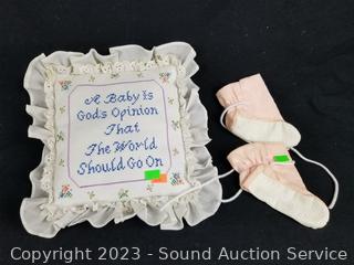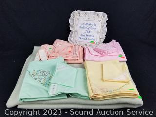 Lot #0119: Embroidered Baby Blankets, Pillow