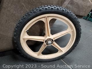 Lot Details: 15" x 45" x 26" bin, 20" inflatable wheels. Various scuffs & wear to finish.