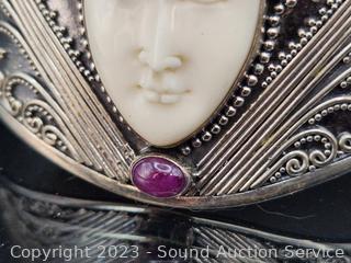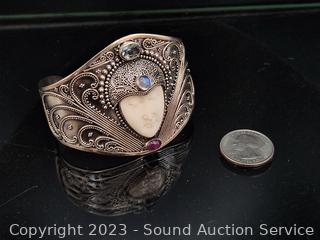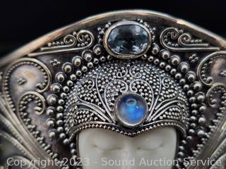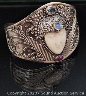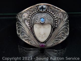 Lot #0050: Indonesian Sterling Moonstone Goddess Bracelet