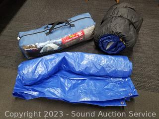 Lot #0248: Kelty Sleeping Bag, 11'x8' Tarp & 5ft Dome Tent