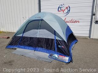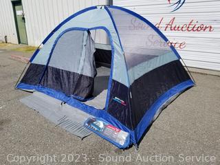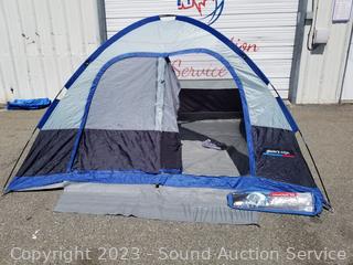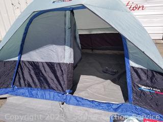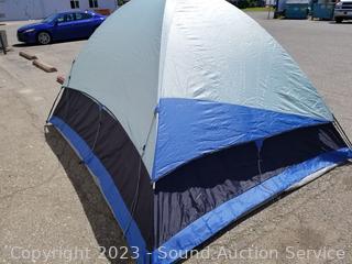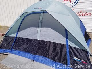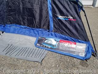 Lot Details: Tent is complete by Glaciers Edge, 30" x 80" Ridgeway by Kelty sleeping bag, light wear from use, comes with pillow.