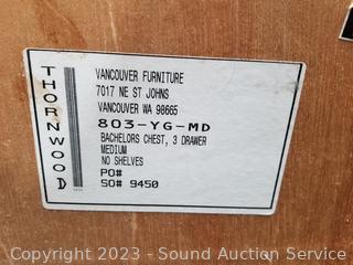 Lot #0008: Vancouver Furn. Thornwood 3-Drawer Chest
