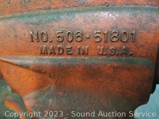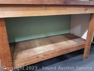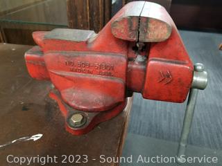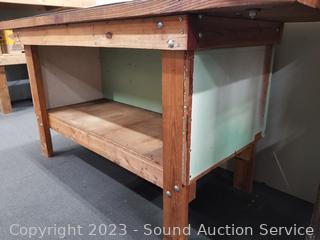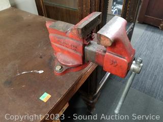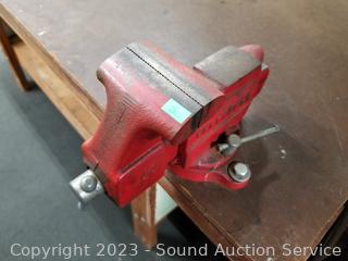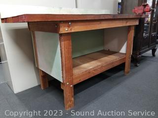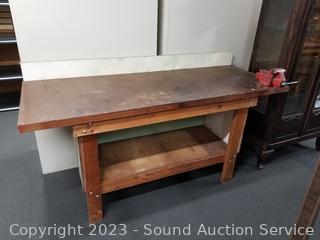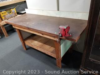 Lot Details: 3.5" jaw Craftsman vise. 34.5" x 72" x 28" D bench. Various wear from use.