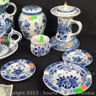 Lot #0168: 14pc Holland Delft Blue Fine China Decor