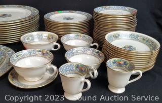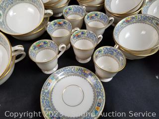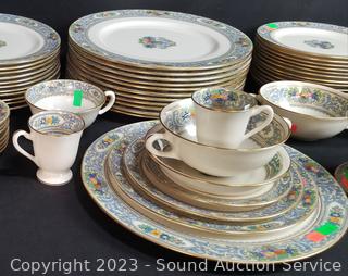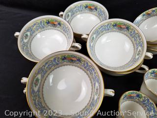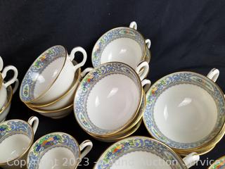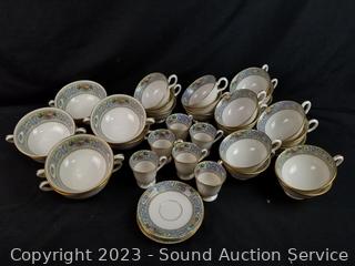 Lot Details: 11 dual handle cups, 21 single handle cups, 10 demitasse cups, 14 snack plates, 12 berry bowls, 11 snack plates, 13 slightly different snack plates, 12 demitasse saucers, 22 standard saucers, 12 lunch plates, 12 dinner plates. Don't see any issues.